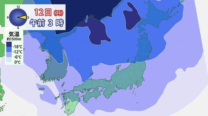 その後、11日から12日ごろにかけて、日本付近は強い冬型の気圧配置となり、上空には強い寒気が流れ込む予報です。