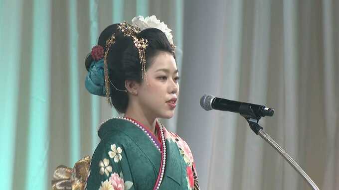 きょうのこの式典は、二十歳になった私たちが未来へ向かって歩み始める大切な節目です。それぞれの夢や目標に向かう私たちを、どうか温かく見守ってください」