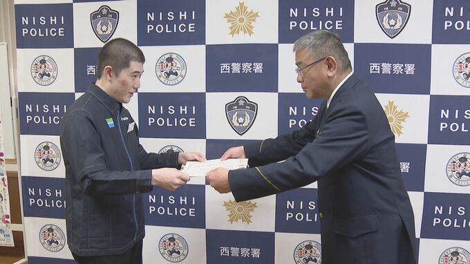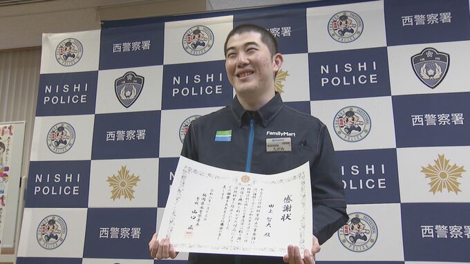 福岡市の西警察署で感謝状を受け取ったのは、「ファミリーマート 福岡いきの松原店」の店員・田上智大さん(21)です。