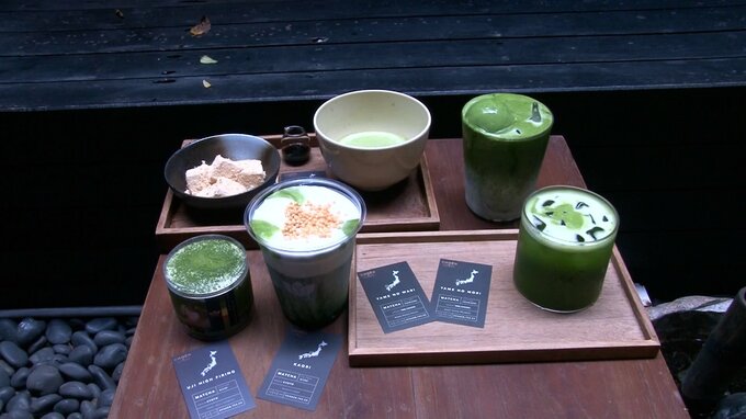 「ココナッツウォーターやオレンジジュースといったタイで手に入るほぼ全てのフルーツジュースを抹茶と融合させたり、バナナやチーズ、塩クリームなどを加えたり。飲み物なのかデザートなのか分からないような感覚を与えて、バリエーションを増やしています」