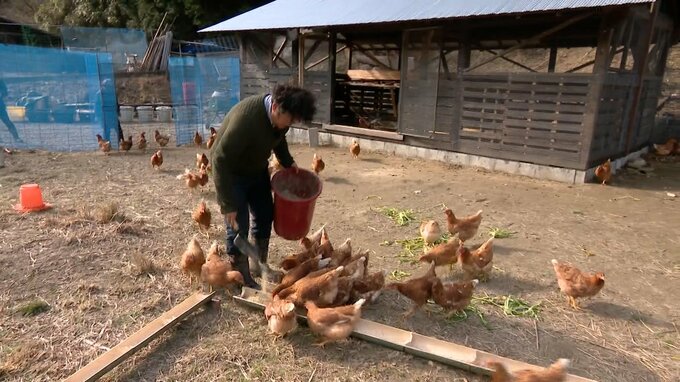 「どんぐりから全部腐葉土になってここにありますので、これは100%与えないと鶏のタマゴはおいしくならないと思っています。これを入れた方が鶏のタマゴを産む頻度が高くなるって話も聞いたりとか、実際やってみないと分からないところがあるかなと。どれを混ぜたら美味しくなるのか、どれを混ぜたら鶏が元気になるのか、いろいろチャレンジしながらやっています」
