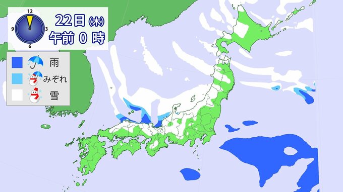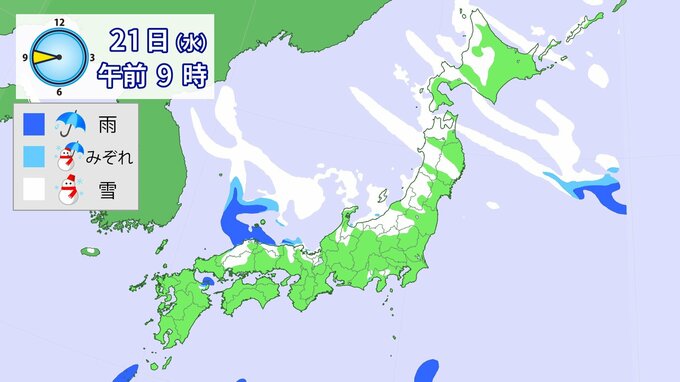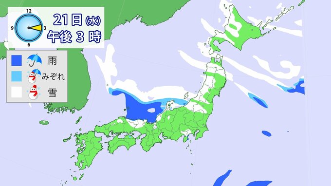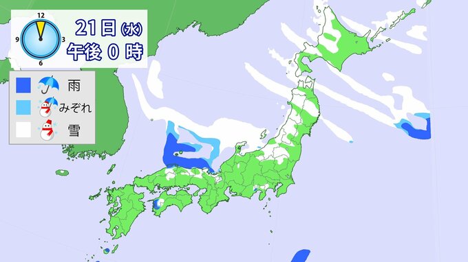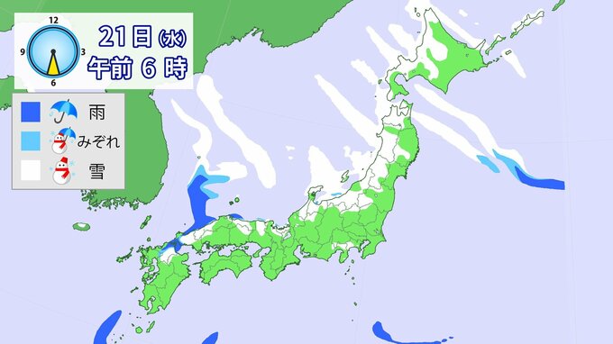 【大雪】“最強クラス”寒波の影響、21日~25日ごろ北~西日本の日本海側を中心に平地でも大雪のおそれ(雨・雪シミュレーション) 北陸100cm、東北70cm、近畿・北海道50cm、関東甲信40cm予想 1時間前