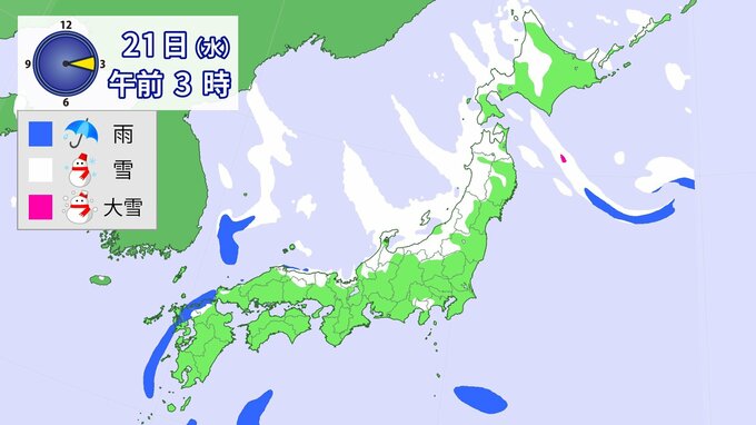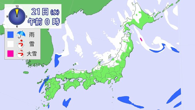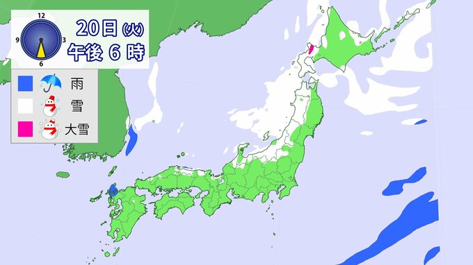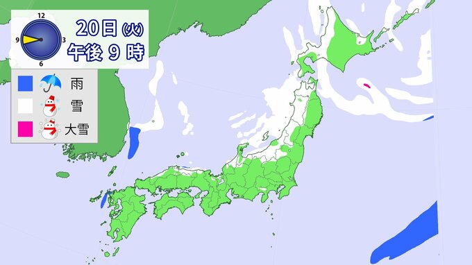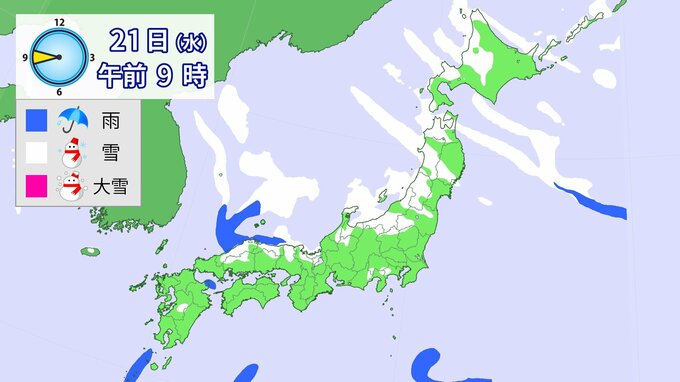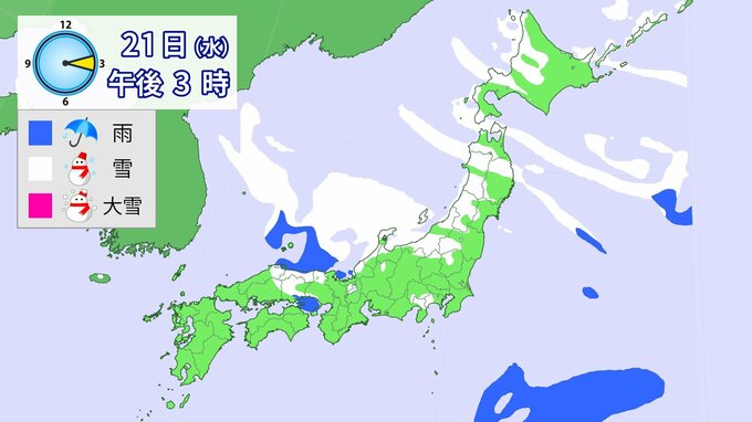 【大雪シミュレーション】20日午後6時から23日午後6時まで 特に22日は東北地方南部から山陰にかけて降雪が強まるおそれ 2026年1月20日(火) 16:53 国内 20日午後6時から21日午後6時までに予想される24時間降雪量(多い所) 北海道地方 50センチ 東北地方 70センチ 関東甲信地方 20センチ 北陸地方 70センチ 近畿地方 30センチ 中国地方 25センチ