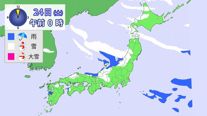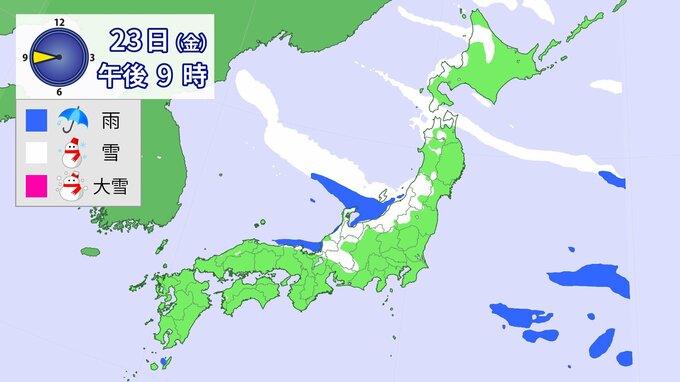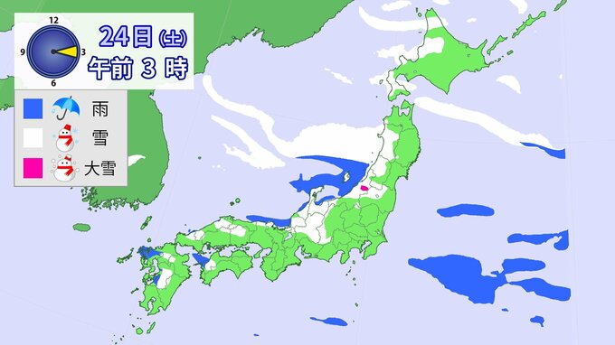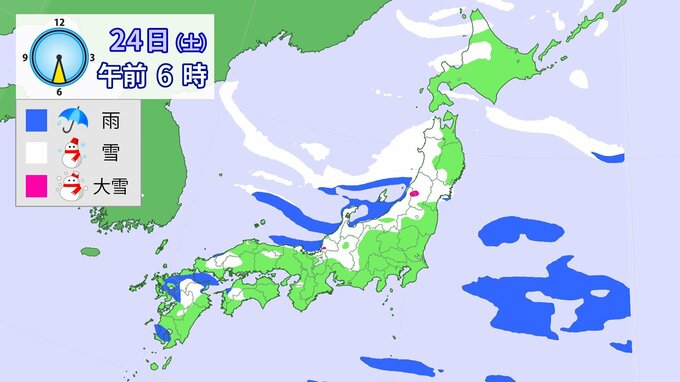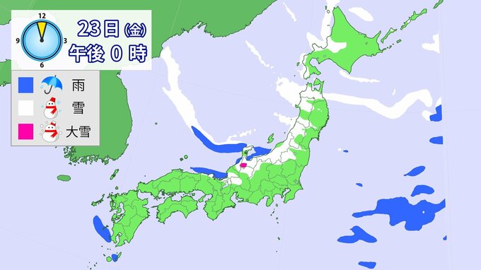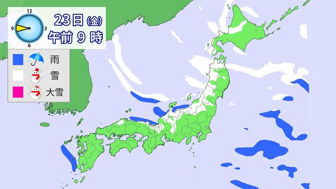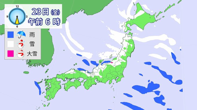 【大雪情報】降雪シミュレーション 1月21日~24日まで 2026年1月21日(水) 10:35 国内 23日午前6時~24日6時までに予想される24時間降雪量(多い所) 北海道地方 40センチ 東北地方 70センチ 北陸地方 70センチ 東海地方 50センチ 近畿地方 40センチ