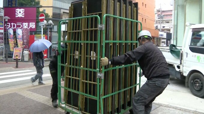 急な準備に追われているのは、自治体だけではありません。福岡市では20日、イベント用品のレンタル業者が候補者の事務所の設営に追われていました。
