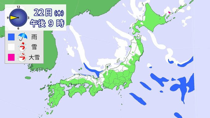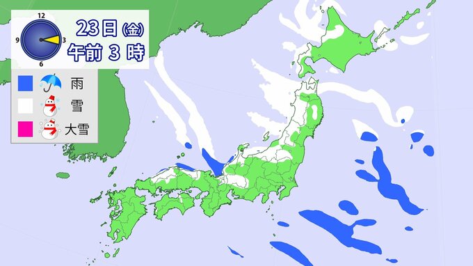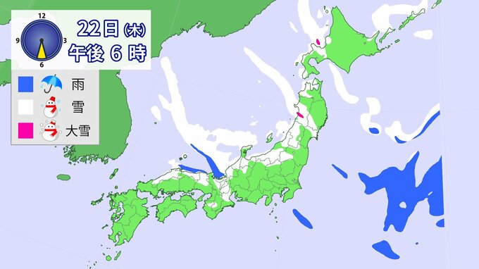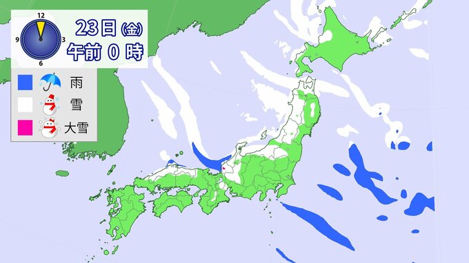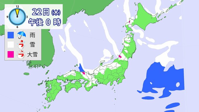 22日午前6時~23日午前6時までに予想される24時間降雪量(多い所)