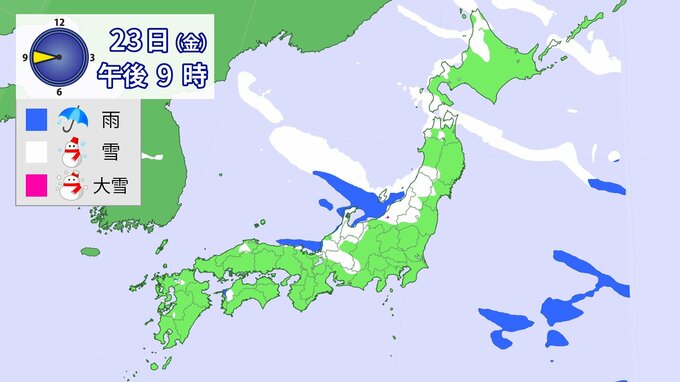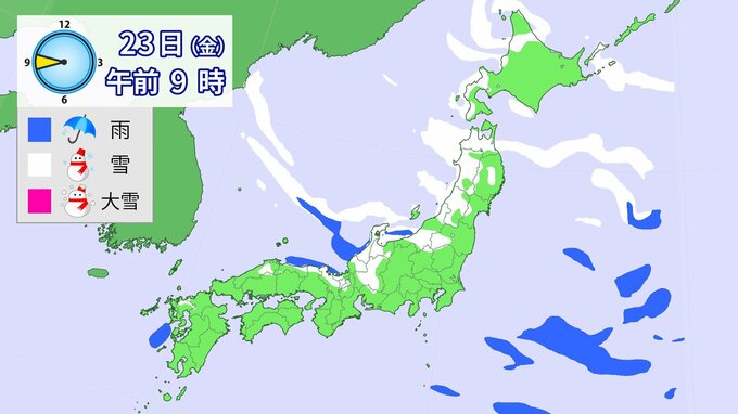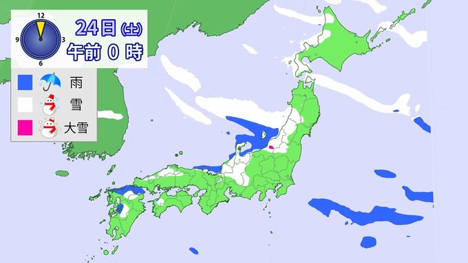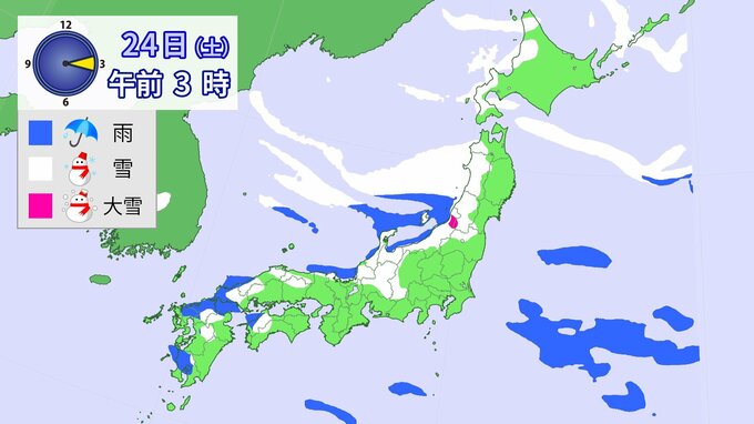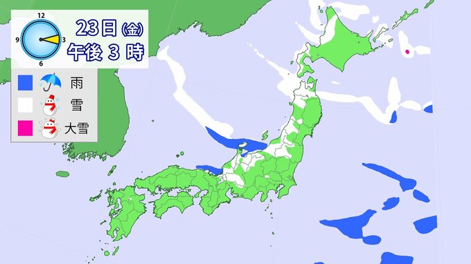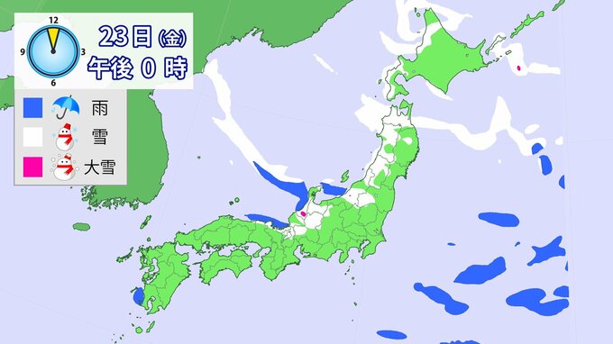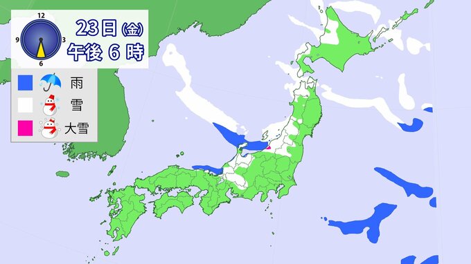 23日午前6時~24日午前6時までに予想される24時間降雪量(多い所)