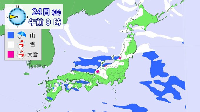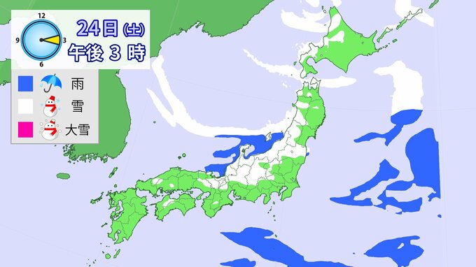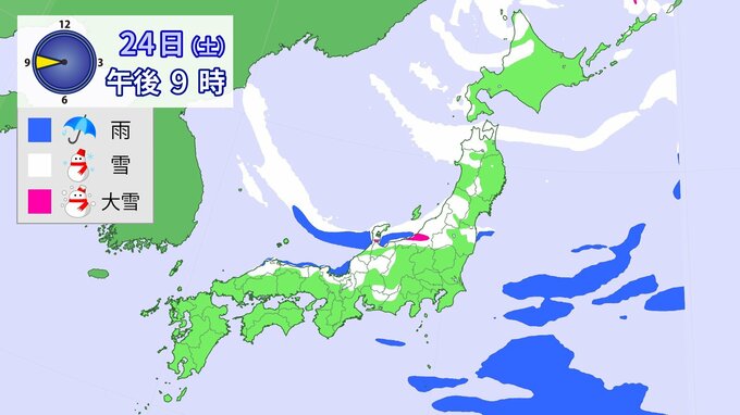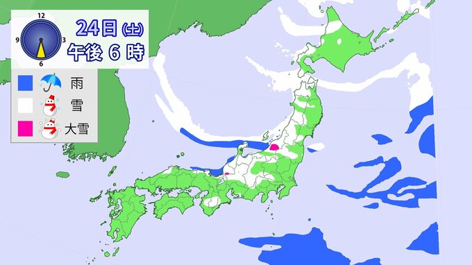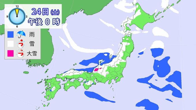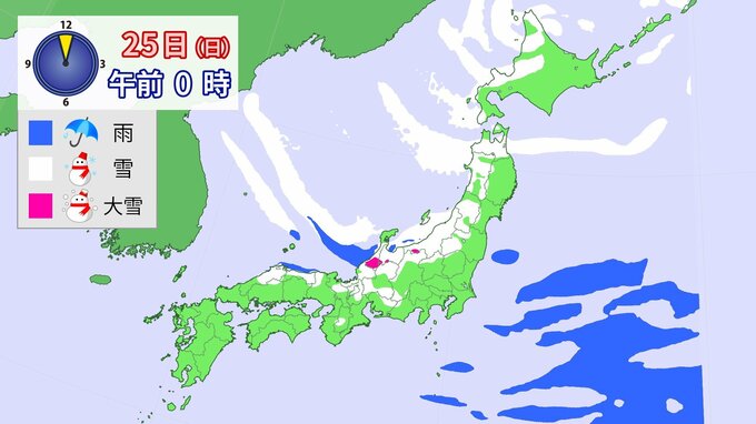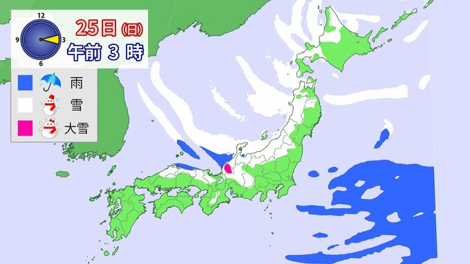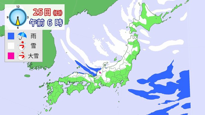 24日午前6時~25日午前6時までに予想される24時間降雪量(多い所)