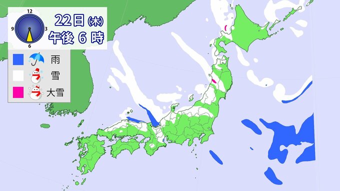 【大雪情報】いつどこでどれだけ降る? 雪・雨シミュレーション(22日午後6時~25日午後6時) 2026年1月22日(木) 17:12 国内 22日午後6時~23日午後6時までに予想される24時間降雪量(多い所) 北海道地方 50cm 東北地方 70cm 関東甲信地方 15cm 北陸地方 80cm 東海地方 50cm 近畿地方 50cm 中国地方 40cm