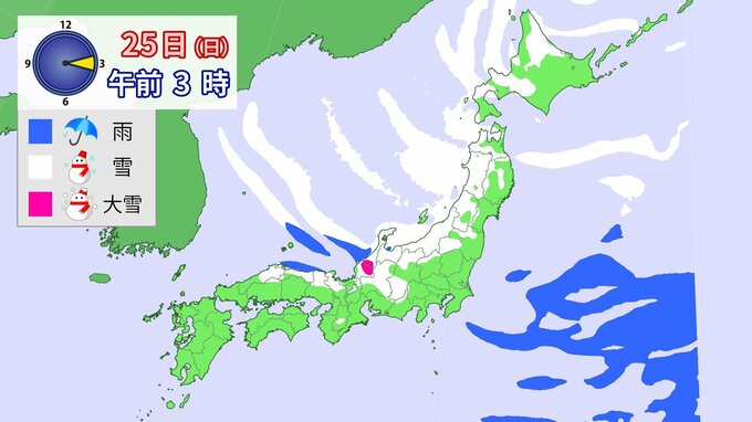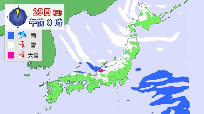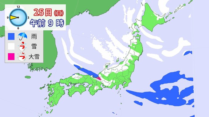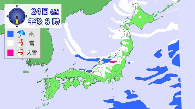 【大雪情報】いつどこでどれだけ降る? 雪・雨シミュレーション(22日午後6時~25日午後6時) 2026年1月22日(木) 17:12 国内 24日午後6時~25日午後6時までに予想される24時間降雪量(多い所) 北海道地方 40cm 東北地方 70cm 関東甲信地方 70cm 北陸地方100cm 東海地方 50cm 近畿地方 40cm 中国地方 40cm