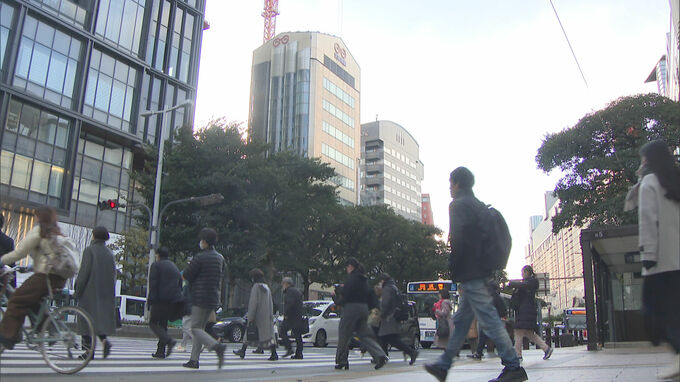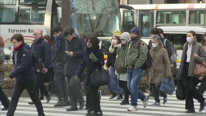 天神では、寒さ対策をして職場へ向かう人の姿が見られました。