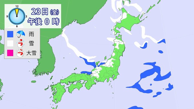 【大雪情報】23日(金)~26日(月)雪・雨シミュレーション いつどこでどれだけ降る? 2026年1月23日(金) 12:00 国内 23日午前6時~24日午前6時までに予想される24時間降雪量(多い所) 東北地方 60cm 北陸地方 80cm 東海地方 60cm 近畿地方 40cm 四国地方 15cm 九州北部地方 20cm
