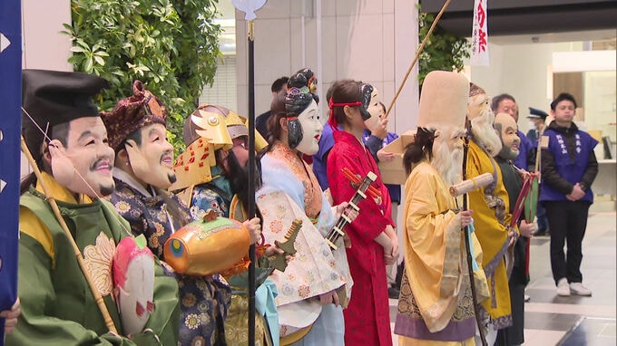 鬼や七福神に扮しているのは、ベトナムや中国などから九州産業大学に留学している10人の留学生です。