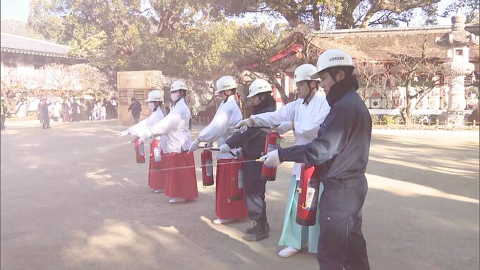26日午前、福岡県太宰府市の太宰府天満宮で行われた防火訓練には、天満宮の職員などおよそ50人が参加しました。