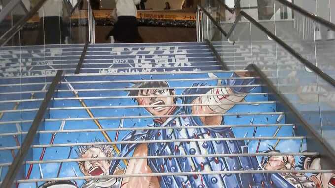 「こちらにもありますよ、階段がキングダム仕様になっています。大迫力ですね」