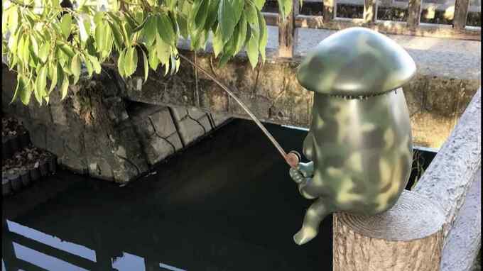 無くなった銅像は、迷彩柄のきのこが柵のふちに腰掛け、両手に釣り竿を持って魚釣りをしている様子がかたどられていました。町民にも愛されていたという銅像。12月18日に町民が無くなっていることに気づき、役場に連絡しました。ただ、被害はこれだけではありません。