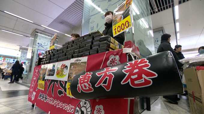 JR博多駅の特設スペースでは、午後8時まで恵方巻きが販売されています。