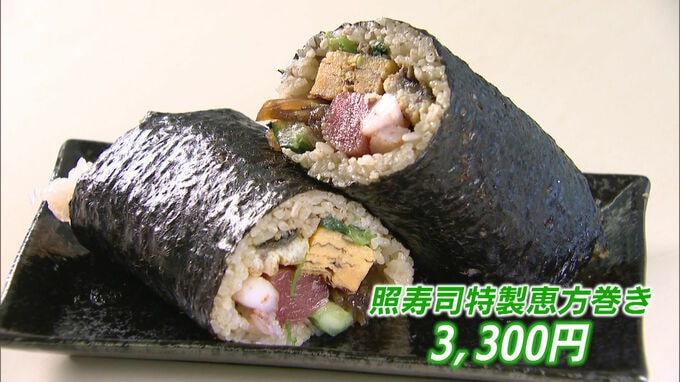 予約困難という人気店、戸畑区の「照寿司」の恵方巻きは本マグロや鰻など8種類の厳選した具材を使った贅沢な一品です。