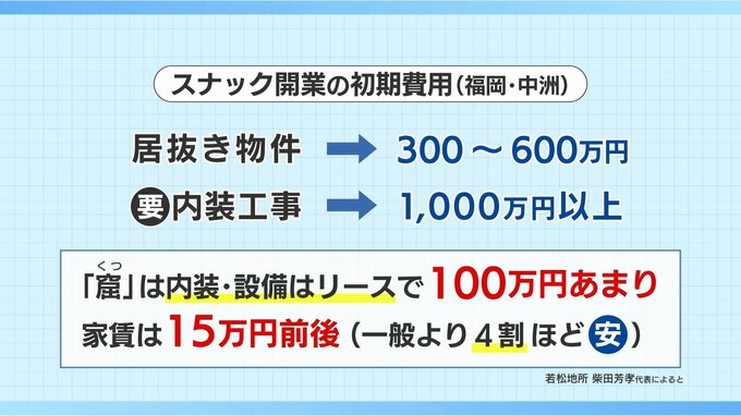 柴田さんによると、中洲でのスナックの開業コストは、居抜き物件を活用する場合で300万円~600万円ほど、内装工事をゼロから行う場合は1000万円以上に上るといいます。