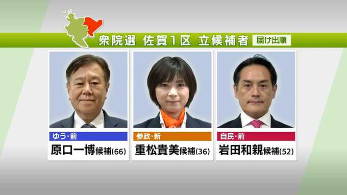 佐賀市など県東部を選挙区とする佐賀1区は、自ら立ち上げた新党から出馬した前職と自民・前職が互角の戦いを繰り広げています。