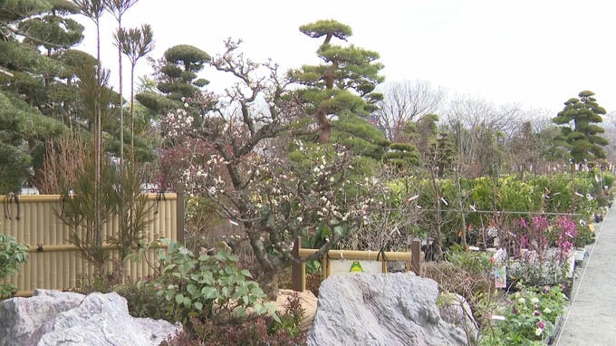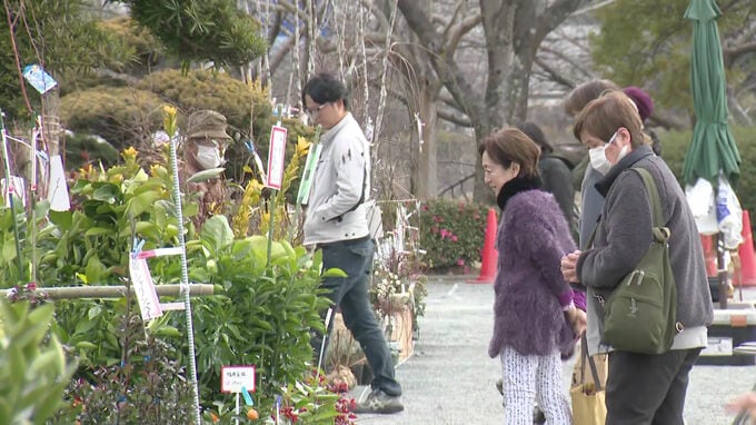 久留米百年公園で始まった「久留米植木まつり」では、これから見頃を迎えるウメやサクラなどおよそ1000種類、10万本の植木や苗木が展示・販売されています。