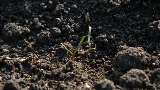 2週間以上前に種をまいたホウレンソウが、雨水を吸い込み、ようやく発芽してくれたといいます。