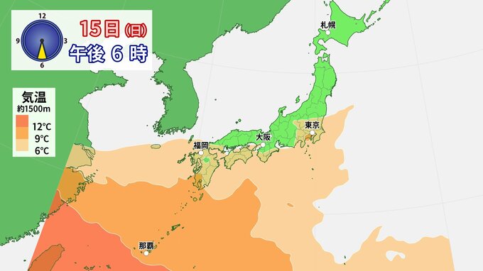 関東以西の上空約1500メートルには、6℃以上(晴れると気温が20℃前後まで上がる暖気)が流れこみ、一気に春めくでしょう。