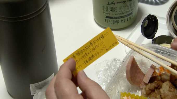 「気づきました?いつも妻が書いてくれているメッセージですね」
