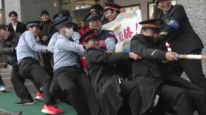 JR西日本 VS JR九州 軍配はどちらに? 博多駅で綱引き大会 「地域を元気に」思い込めて7回目 2026年2月14日(土) 12:38 国内 九州の玄関口・JR博多駅から地域を元気にしようと、力自慢が集まった綱引き大会が開かれています。博多駅前広場には、14日午前「博多駅にぎわい綱引き大会」に出場する小学生から大人までの25チームが集まりました…