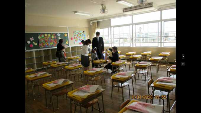 入学式は体育館では開かれず、クラスごとに1家族ずつ行われました。