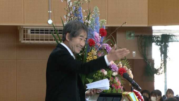 当時の校長も壇上に立ち、志免西小学校の合い言葉を紹介しますが・・・