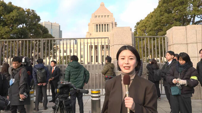 「東京千代田区の国会議事堂前には開門30前から多くの報道陣や議員たちが集まり、熱気に包まれています」