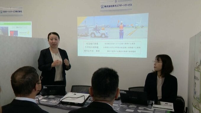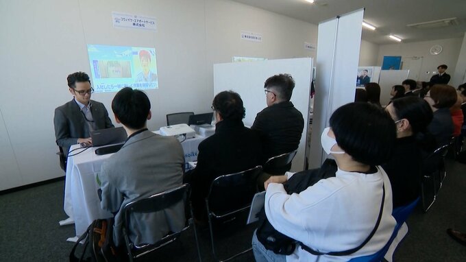 17日、福岡空港のターミナルビルで開かれたのは、グランドハンドリングの合同企業説明会。10代から60代まで120人が集まりました。