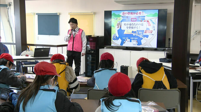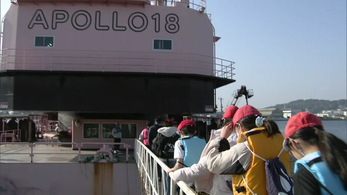 19日午前、北九州市若松区の北九州港で行われた見学会には近くの小学生などおよそ20人が集まりました。