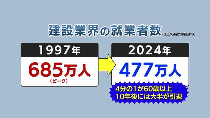 高校生が楽しみながら参加した出前授業ですが、こうした取り組みの背景には、建設業を取り巻く深刻な状況があります。