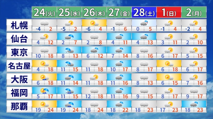 この先は、寒気は弱まり、低気圧が度々本州付近を通過するようになる見込みです。