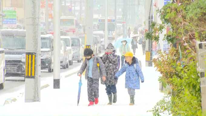 佐賀県では、武雄市、伊万里市、嬉野市で全ての公立の小中学校が臨時休校となりました。多くの学校が23日は2学期の終業式です。福岡市では雪が降る中、元気に登校する子供の姿がありました。