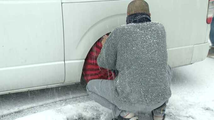 ドライバー「普通に走ってて(雪が)あまりにもひどくて、スリップしそうになってチェーンを着けています」