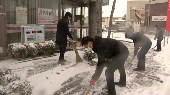 筑邦銀行の雪かき「だいたいこの時期になると、年1回は雪かきしています。すべったら危ないので」