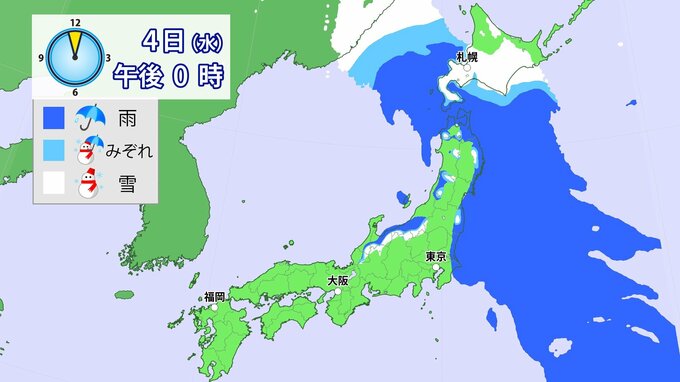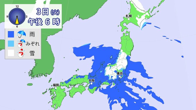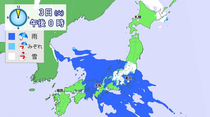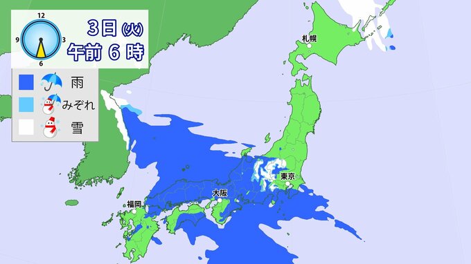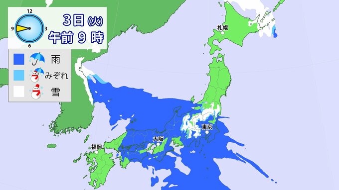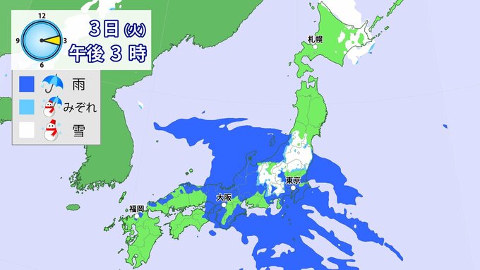 3日(火)は雨の範囲が東日本に移るでしょう。