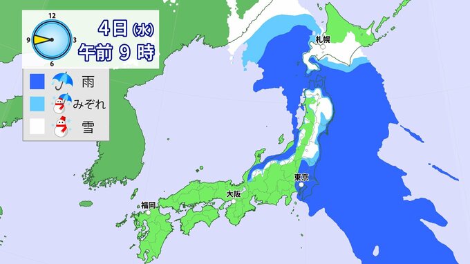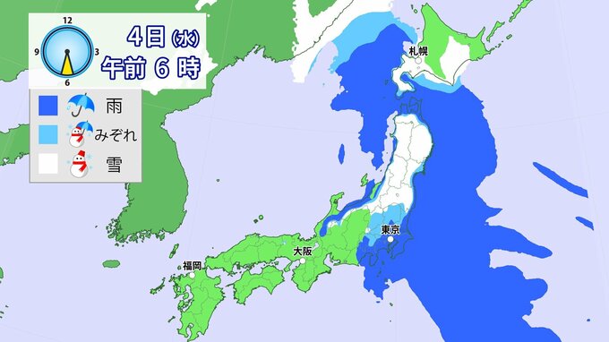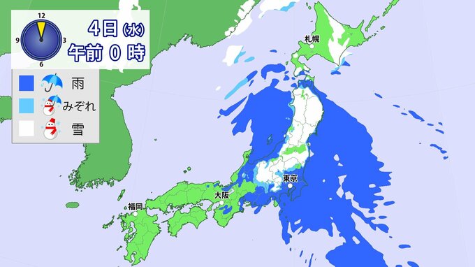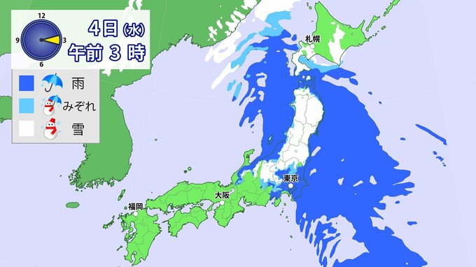 今のところ、平地では冷たい雨かみぞれが主体ですが、予想よりも地上気温が低くなった場合は東京都心などでも雪が降る可能性があります。