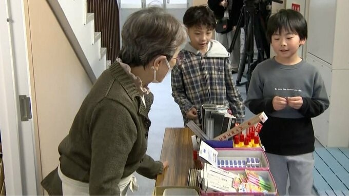 「学校の階段の隣には文房具などが並んでいますが、実はこちら売店で中には体操着もあります」