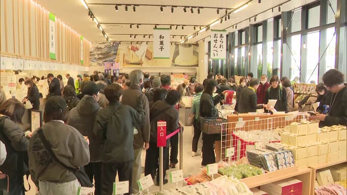 5日午前、福岡県直方市にある米菓メーカー・「もち吉」の工場直売所が新たにオープンしました。