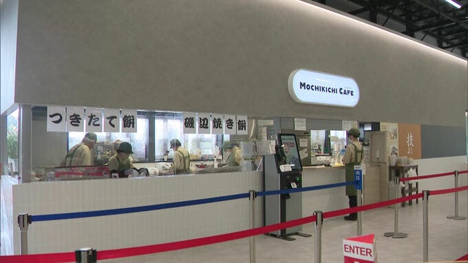 定番のあられやせんべいなどが並ぶ「販売エリア」と、出来たての餅や豆腐などがその場で楽しめる「飲食エリア」も整備された複合施設となっています。