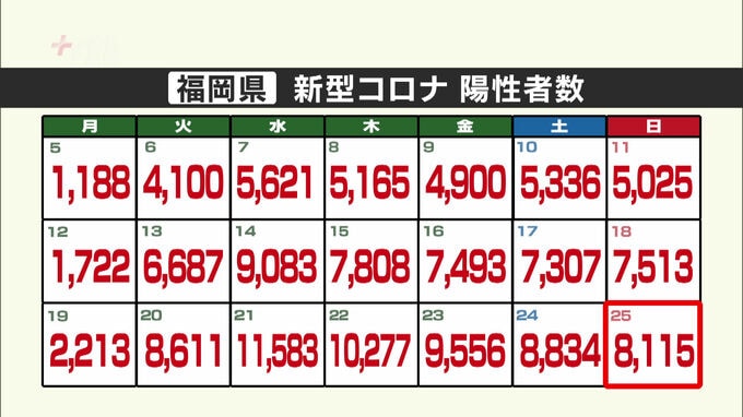 8月以来の病床使用率70%超え 新型コロナ陽性(25日)福岡県8115人 2022年12月25日(日) 18:30 国内 新型コロナウイルスについて福岡県は25日、新たに8115人の陽性と7人の死亡を発表しました。福岡県の25日の新規陽性者は8115人で前の週の同じ曜日よりも600人ほど多く、3週間連続で増加してい…