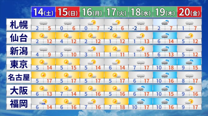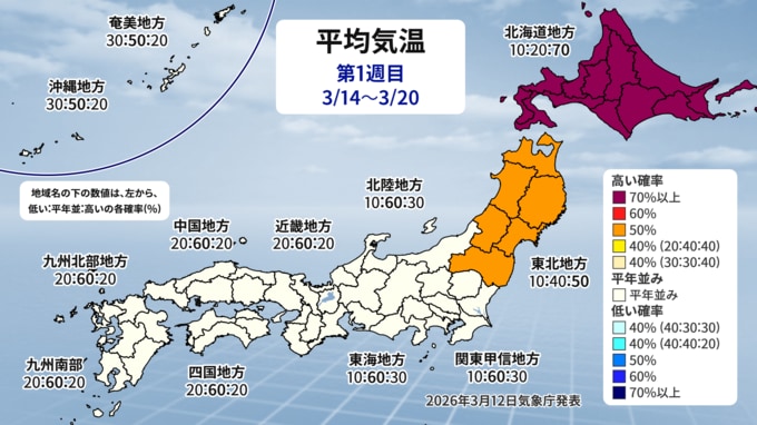12日に発表された最新の1か月予報では、気温は全国的に平年よりも「高くなる」見込みです。来週以降は順調に気温が上がり、ぽかぽか陽気となる日が多くなるでしょう。