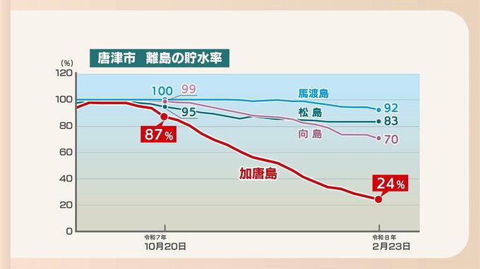 他の離島と貯水率の変化を比較してみると加唐島だけが著しく低下しているのがわかります。
