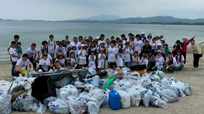 2015年から年に数回宗像市の海岸でごみ拾いを始めた浜田さん、多い時で100キロほどのごみが集まったといいます。