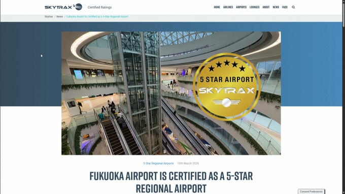福岡空港が、世界的な空港格付け制度で最高評価となる「5スターエアポート」を獲得しました。