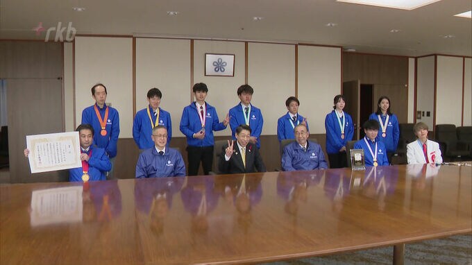 技能五輪や障害者の技能競技会で入賞した福岡県代表の選手らが27日、服部知事を表敬訪問し大会での成績を報告しました。